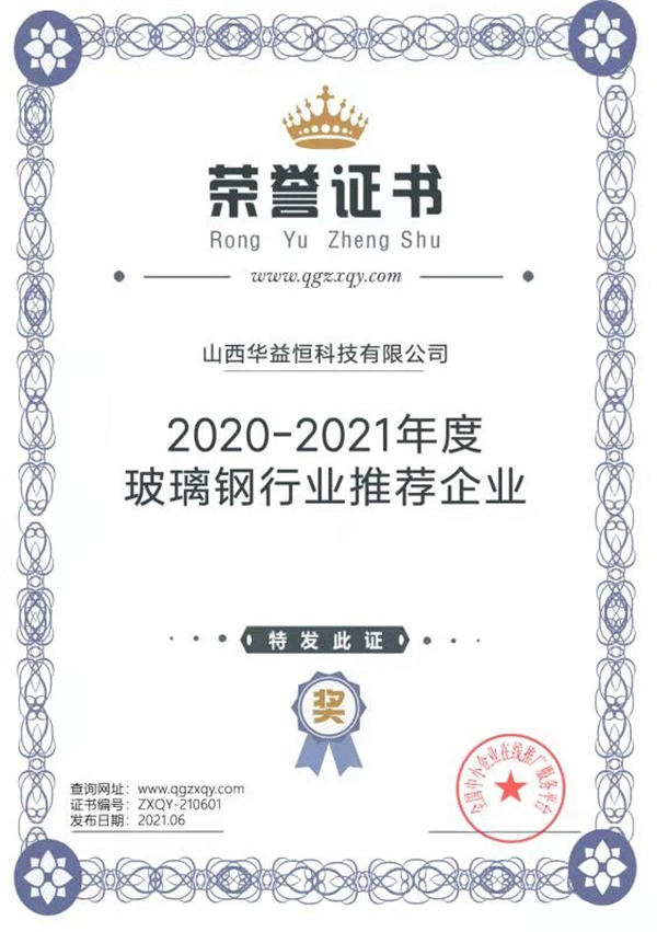 ↑ 華益恒--中國玻璃鋼行業(yè)AAA級誠信單位證書