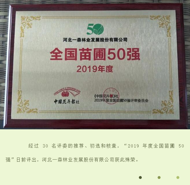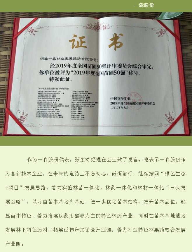一森快訊 | 一森股份榮登全國(guó)苗圃50強(qiáng)
